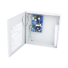 Fuente para aplicaciones en control de acceso, con capacidad de respaldo para 12 y 24 Vcc @ 4 A , con 8 circuitos de control ( NO ) y 8 circuitos de control trigger voltaje de entrada de : 115 Vca.