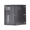 Gabinete de montaje en pared construido en acero, soporta 26 unidades de Rack para equipos de red activos o pasivos. Cuenta con paneles laterales totalmente desmontables y esta diseñado para permitir el control de clima adecuado para uso con diversos equipos de red, así como Switches de alimentación remota (PoE) y fuentes de alimentación ininterrumpida (UPS).