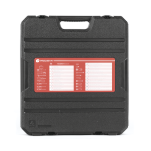 Viene en un resistente maletín plástico para fácil transporte y almacenaje. Los manerales cuentan con un botón de rápida liberación de dados.