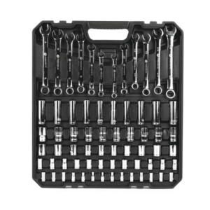 Este juego de herramientas mecánicas es una selección versatil con 3 manerales, una excelente variedad de dados, extensiones, llaves combinadas, llave ajustable, llaves hexagonales, pinzas uso eléctrico y más.