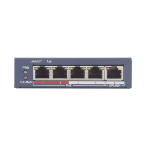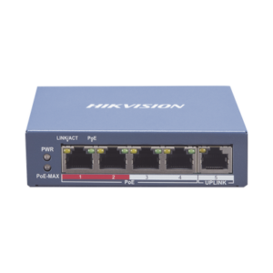 Switch Monitoreable PoE / 4 puertos 10/100 Mbps PoE / 1 puerto RJ45 Uplink / PoE Hasta 250 Metros / 60 W / Conexión Remota desde Hik-PartnerPro
