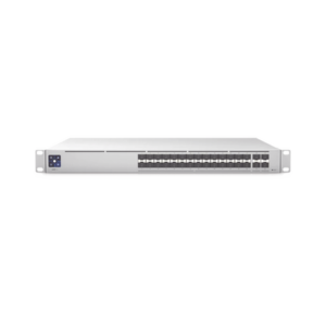 UniFi Switch PRO Aggregation Capa 3 para fibra óptica con 28 puertos SFP (10G) y 4 puertos SFP28 (25G), pantalla informativa