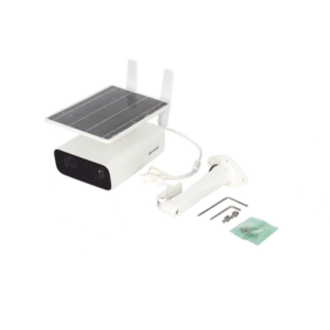 - Incluye: cámara, panel solar, batería de respaldo, montaje de pared.