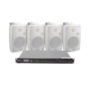 KIT de Amplificador de Audio 120W para Rack | 4 Altavoces de Pared color Negro 2.5W – 20W | Sistema 70/100V