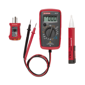 El equipo de prueba eléctrica PK-110 de Amprobe ofrece tres pruebas eléctricas con funciones adecuadas para una variedad de aplicaciones residenciales. El kit incluye el Múltimetro Digital AM-420, Probador de Fase ST-102B con GFCI y detector de tensión VP-1000 sin contacto. Desde la identificación de la presencia de tensión en los contactos eléctricos y los interruptores hasta la confirmación de cableado adecuado de los contactos GFCI, el kit PK-110 cuenta con todas las características necesarias para realizar pruebas de tensión rápidas y seguras.