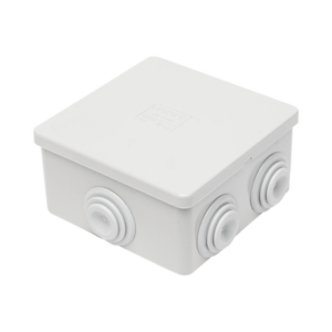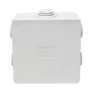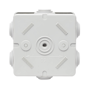 Caja de derivación de PVC Autoextinguible con 6 entradas, tapa a presión, 80x80x40 MM (Medidas internas, mayor área permisible para el cable, Para instalación al exterior (IP44)