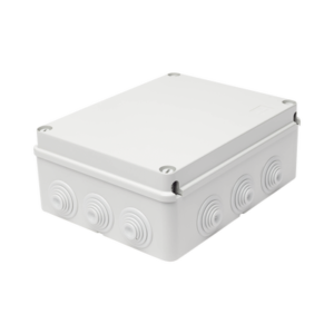 Caja de derivación de PVC Auto-extinguible con 12 entradas, tapa atornillada, 240x190x90 MM, Para Exterior (IP55)