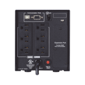 El UPS puede gestionarse localmente a través de puertos serie o USB o gestionarse de forma remota a través de una tarjeta SNMP (una tarjeta de gestión remota opcional) que permite a los administradores y usuarios una flexibilidad insuperable para acceder de forma remota a cada UPS a través de la red. y cierres programados del sistema mediante el uso del software de administración PowerPanel.