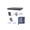 KIT TurboHD 1080p / DVR 16 Canales / 8 Cámaras Bala (exterior 2.8 mm) / 8 Cámaras Eyeball (exterior 2.8 mm) / Transceptores / Conectores / Fuente de Poder Profesional