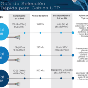 Ancho de banda de 100MHZ para aplicaciones de datos, Fast Ethernet y 155Mbps. Fácil identificación de los pares de colores y franjas.