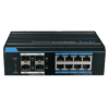 El switch PoE cuenta con 8 puertos PoE RJ-45 10/100Base-T con estándar IEEE802.3af/at más 2 puertos de subida de información que se componen de 1 puerto GE RJ-45(10/100/1000Mbps Base-T) y 1 puerto SFP (1000Mbps Base-X).
