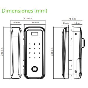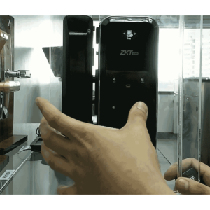 ZK GL300 – Cerradura biometrica para puertas de vidrio / 100 usuarios / Ancho de puerta de 10 a 12 mm / Control remoto / Tarjetas Mifare 13.56 Mhz
