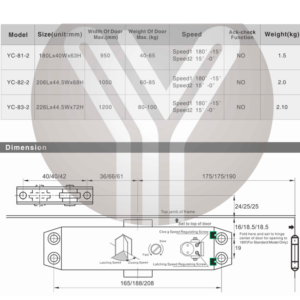 El cierra-puertas se instala en la parte superior de la hoja de la puerta con una sola abertura, se aplica a la puerta de madera, la puerta de acero y la puerta contra incendios. Se puede aplicar a una sola puerta con el ancho máximo de la puerta de 1200 mm y el peso de la puerta de 80-100 kg.