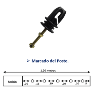 Diseñado para colocarse en cualquier poste de una cerca eléctrica. Por su fabricación tiene una alta resistencia a la corrosión y al medio ambiente por lo que garantiza su durabilidad además de que su diseño permite tener una fácil instalación en el cerco eléctrico.