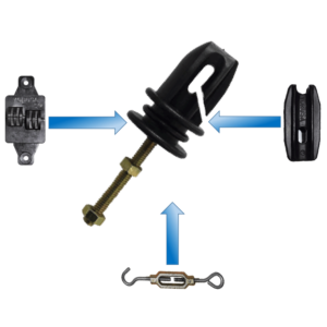 YONUSA AP401 – Aislador 3 en 1 realiza funcion de aislador Paso, esquina y tensor para cercos electricos / Resistente a la corrosión / Resistencia de tensión de 70 a 120 Kgs