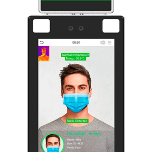 Además, el reconocimiento de palma 3 en 1 (forma de palma, impresión de palma y vena de palma) se realiza en 0,35 segundos por mano. Como se mencionó anteriormente, ProFace X [TI] puede ayudar a reducir el riesgo de infección y propagación de gérmenes durante la reciente crisis mundial y problema de salud pública. Permite la medición rápida y precisa de la temperatura corporal y la identificación individual con mascara durante la verificación facial y de la palma de la mano en todos los puntos de acceso, especialmente en hospitales, fábricas, escuelas, edificios comerciales, aeropuertos, estaciones y otras áreas públicas.