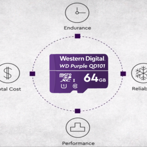 La tarjeta microSD WD Purple SC QD101 de Western Digital está diseñada específicamente para el mercado principal de las cámaras de seguridad. La tarjeta utiliza la tecnología 3D NAND de 96 capas, por lo que ofrece una combinación rentable de ultrarresistencia, alto rendimiento y un amplio rango de capacidad. Además, el soporte de funcionalidad de supervisión del estado de la tarjeta posibilita la gestión preventiva del almacenamiento. Dado el rápido crecimiento del mercado de las cámaras de seguridad y la creciente adopción de vídeo 4K, esta tarjeta ofrece la combinación adecuada de durabilidad y capacidad para manejar la carga de trabajo de grabación continua las 24 horas del día, los 7 días de la semana. En Western Digital, WD Purple es el almacenamiento microSD ideal para cámaras de vigilancia de seguridad y dispositivos periféricos en el que puede confiar.