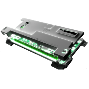 La placa principal y otros componentes están contenidos en una carcasa protectora, haciendola más robusta y facilitando la instalación del sistema.
