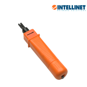 La herramienta de impacto de punción con carga de resorte utilizado para empujar los hilos entre los pins de metal en el patch panel, permitiendo pelar al mismo tiempo el revestimiento del cable. Esto asegura una buena conexión eléctrica del cable con los pins que se encuentran dentro del Jack. La herramienta de punción también corta cualquier exceso de alambre.