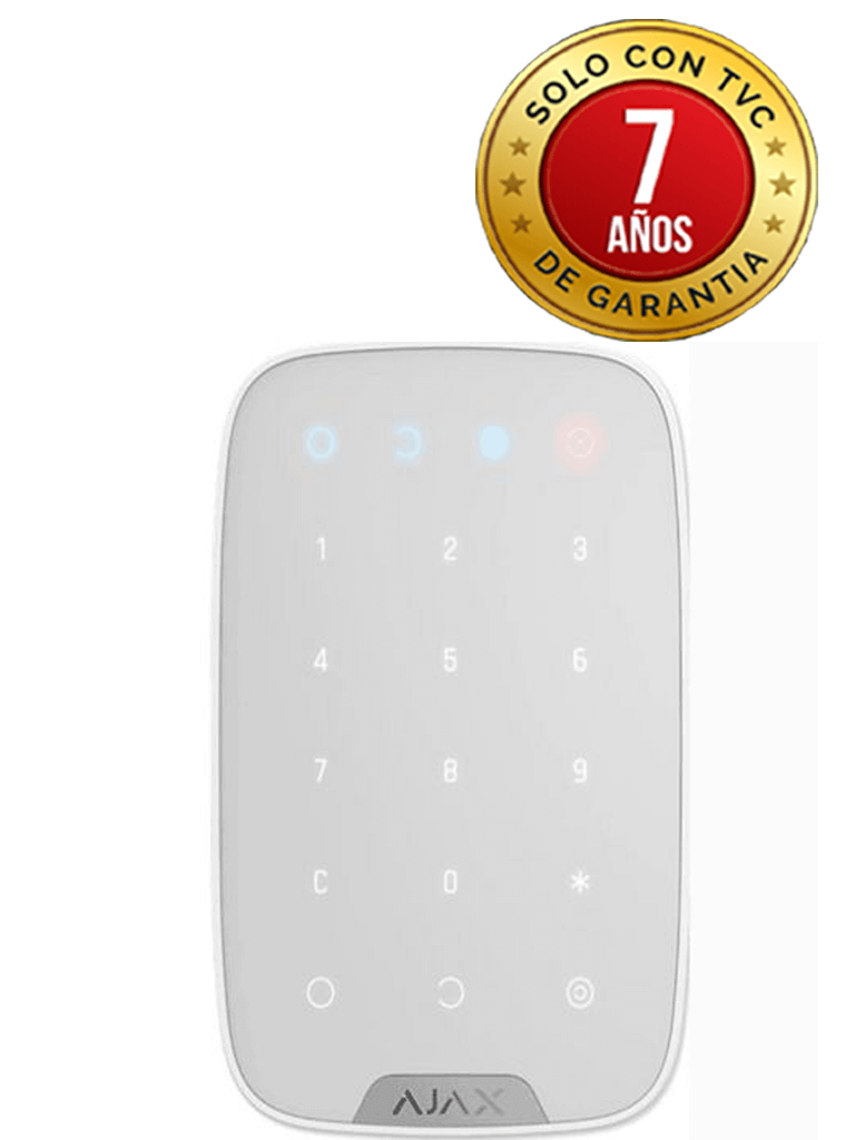 KeyPad es un teclado tactil fijo que se ubica dentro de una estancia. Permite armar el sistema con un código digital o pulsando un botón, activar el modo noche, desarmar la estancia y notificar a la compañía de seguridad privada del intento de forzado del sistema de seguridad, lo que se conoce como código de coacción o código de amago.