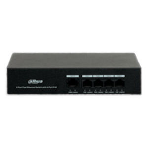El DHPFS3005-4ET-36E es un switch no administrable de la marca Dahua el cual consta de 5 puertos de red, los cuales soportan velocidades de hasta 100 Mbps en cada uno de sus 5 puertos.