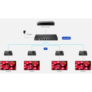 El extensor HDMI LKV724P permite transmitir energía eléctrica a través del mismo transmisor para que los dispositivos receptores puedan energizarse y funcionar sin necesidad de tener alguna fuente de energía externa.