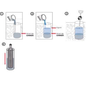 Las relaciones de cubetas de IONNER por electrodo esta en funciones de las dimensiones de la perforación y al tipo de terreno.