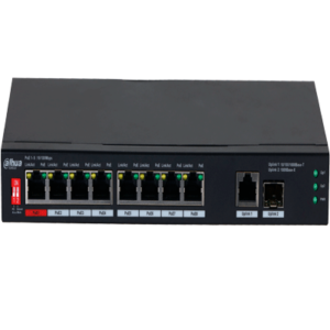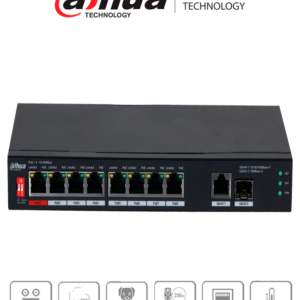 DAHUA PFS3010-8GT-96 – Switch Poe de 10 Puertos Gigabite/ 8 Puertos PoE/ 2 Puertos Uplink 10/100/1000/ 96 Watts Totales/ Switching 20 Gbps/ Tasa de Reenvio de Paquetes 14.88 Mbps/ PoE 2.0/