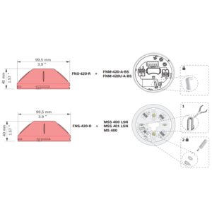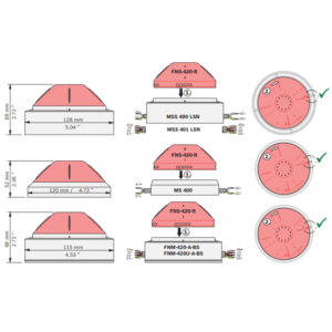 La luz estroboscópica LSN se puede utilizar con las sirenas de base FNM-420-A-BS / FNM-420U-A-BS o las bases de detector con sirena LSN MSS 400 / MSS 401, lo que proporciona una señalización visual y acústica combinada. Montada en la base de detector MS 400, el FNS-420-R puede usarse como luz estroboscópica sin señalización acústica. Ambas aplicaciones se integran fácilmente en una red de seguridad local (LSN) existente.