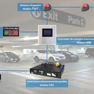 PARKTRON H08 – Controlador de zona para estacionamientos guiados / Capacidad de 40 detectores ULTRASONICOS TS07
