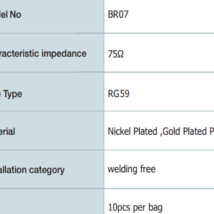 Conector ideal para cable coaxial profesional. El equipo es desarmable para una mayor comodidad en su instalación así como también cuenta con un resorte que brinda mayor flexibilidad y protección.